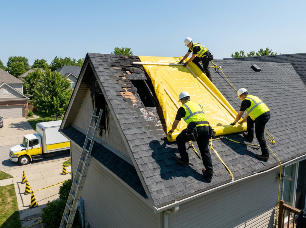 We install temporary protection and stabilization measures to help prevent further damage after a fire.