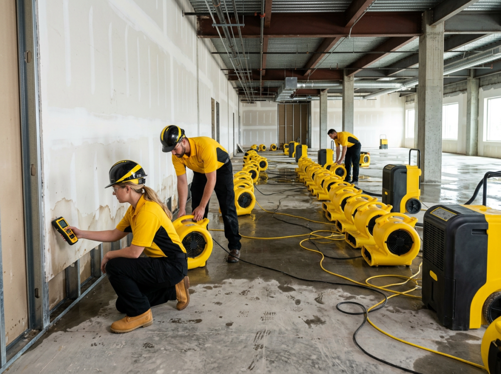 Industrial drying and dehumidification for walls, flooring, ceilings, and hidden moisture areas.