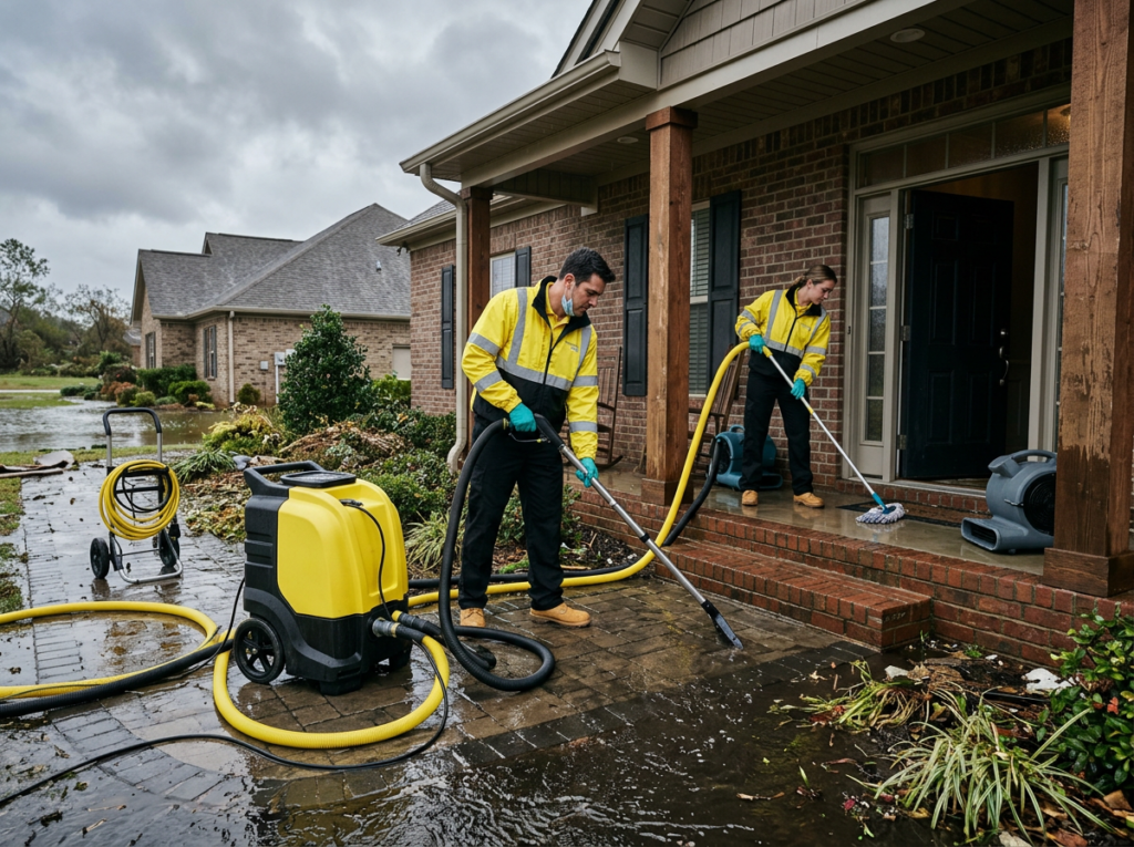 We respond to severe weather events, roof leaks, drain backups, and interior flooding.