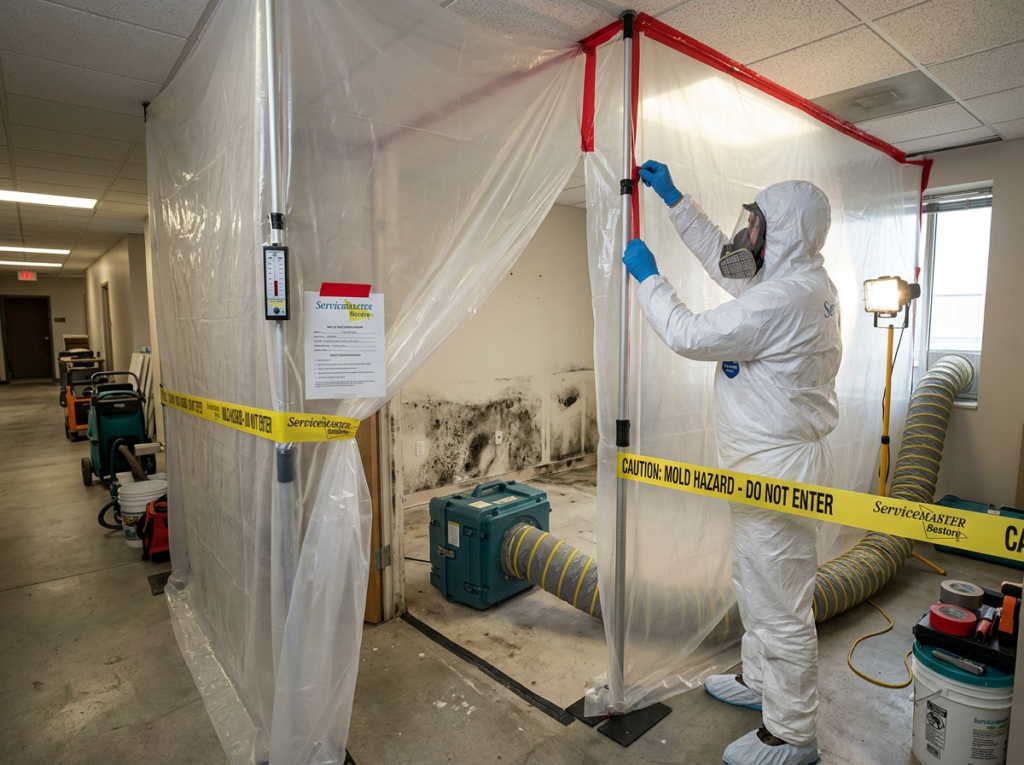 We isolate the affected space to help prevent mold spores from spreading.