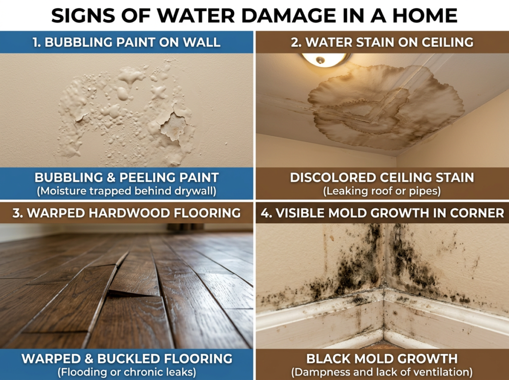 Water damage isn’t always visible to the eye. Detecting it early can save you thousands in repairs. Know these warning signs: