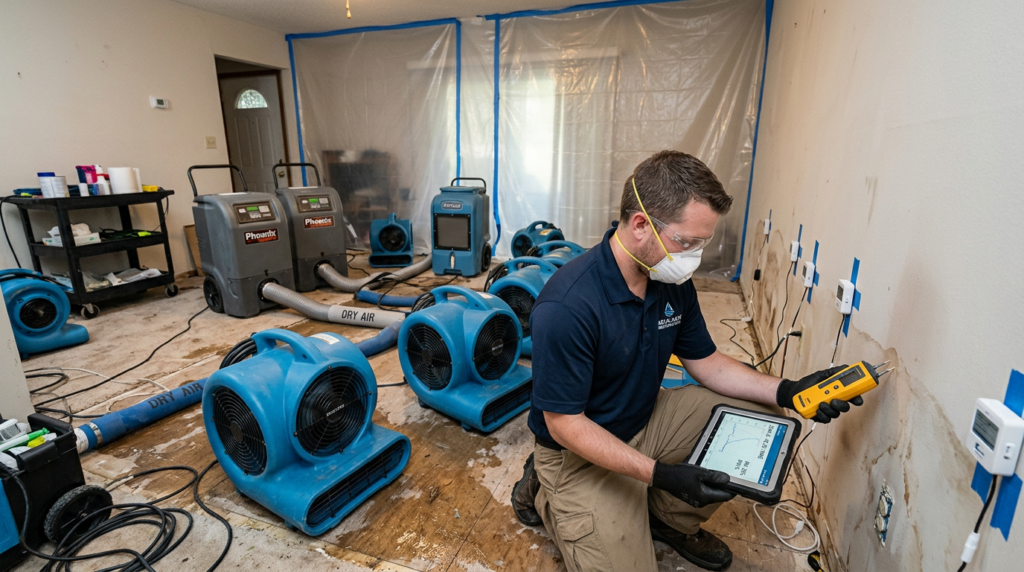 We dry, sanitize, and fully restore water-damaged spaces using commercial-grade dehumidifiers, air movers, and precision moisture detection technology.